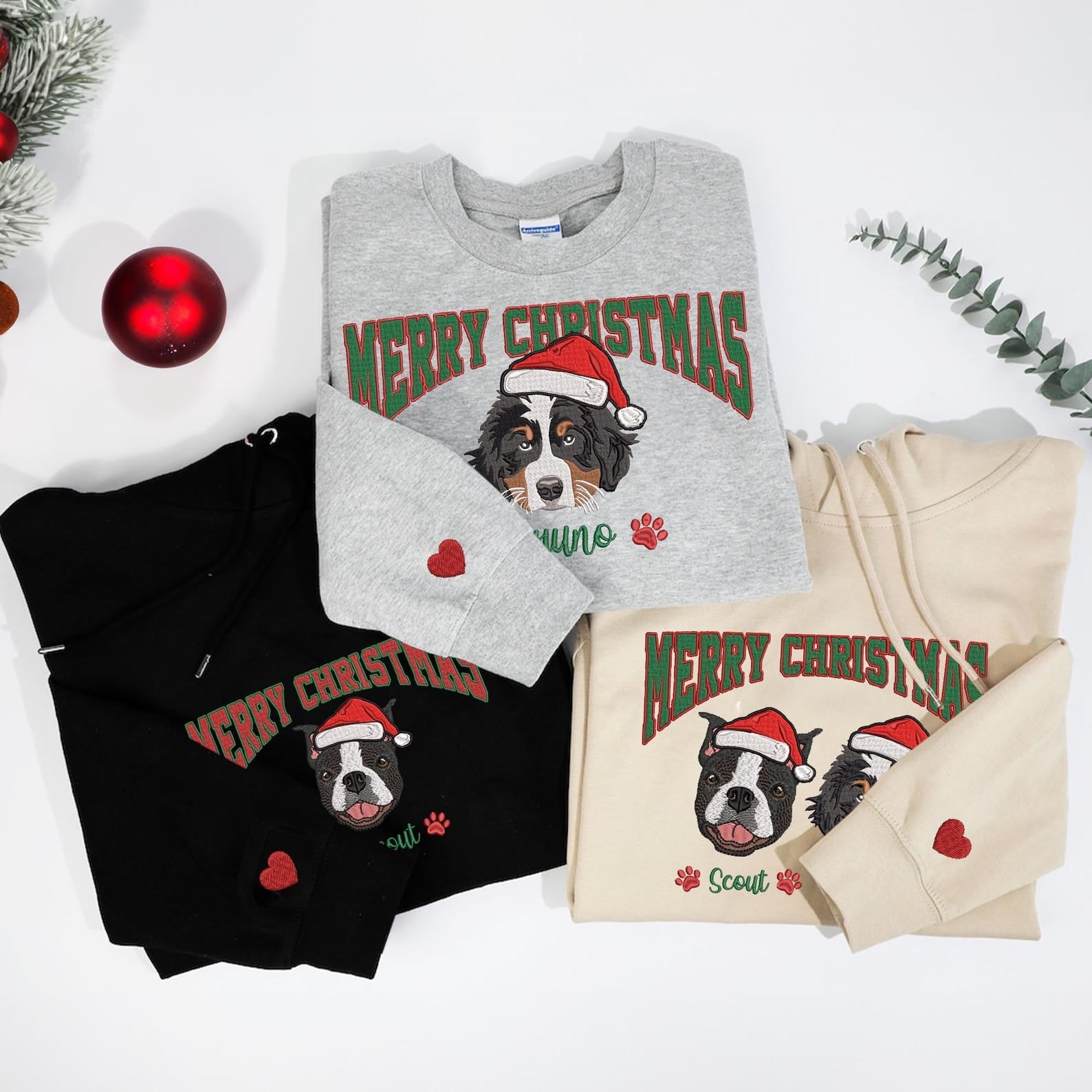 Custom Embroidered Pet Portrait Christmas Sweatshirt Gift for Pet Lovers