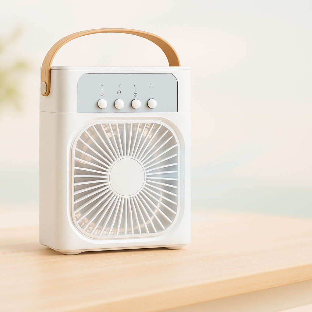 This revolutionary mini device combines fan , humidifier and LED night light in a compact, modern and quiet design. Perfect for your office , bedroom , or living room , it diffuses a refreshing breeze while humidifying the air for optimal comfort, even in summer.