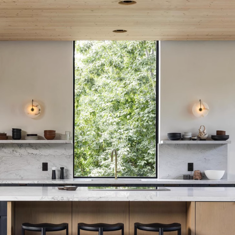 - High-quality materials (wood and glass) create a natural and elegant ambiance