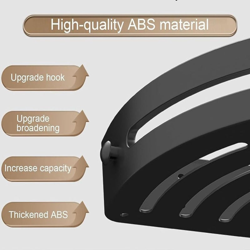 Widened guardrails increase capacity; side hooks hold razors, loofahs, or jewelry so small items never slip away.